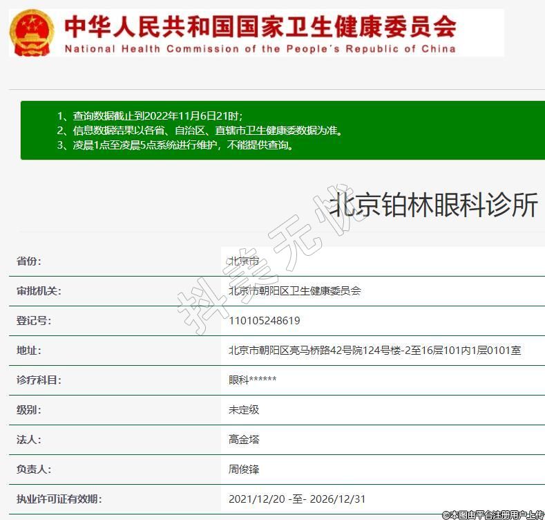 北京鉑林眼科2017-06-14成立,地址:北京市朝陽區(qū)亮馬橋路42號院124號樓-2至16層101內(nèi)1層0101室,診療科目:眼科******