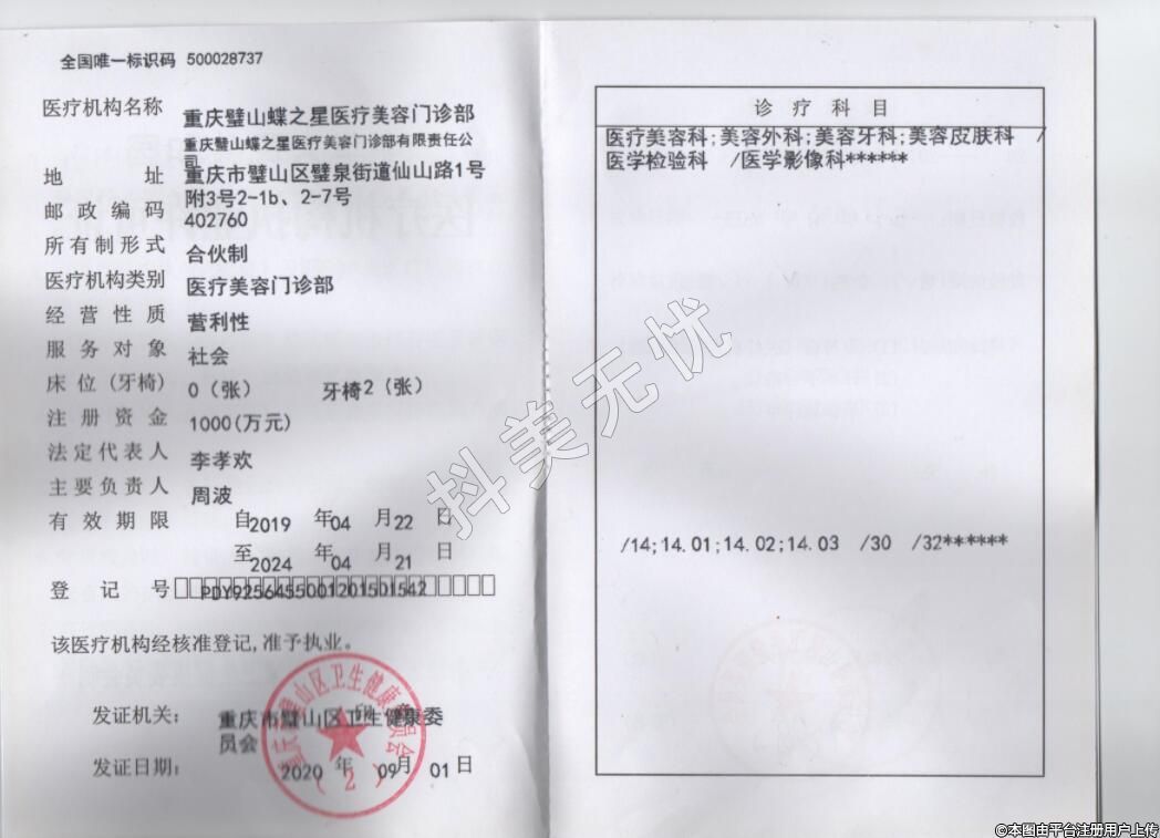 醫(yī)療機(jī)構(gòu)名稱:重慶璧山蝶之星醫(yī)療美容門(mén)診部