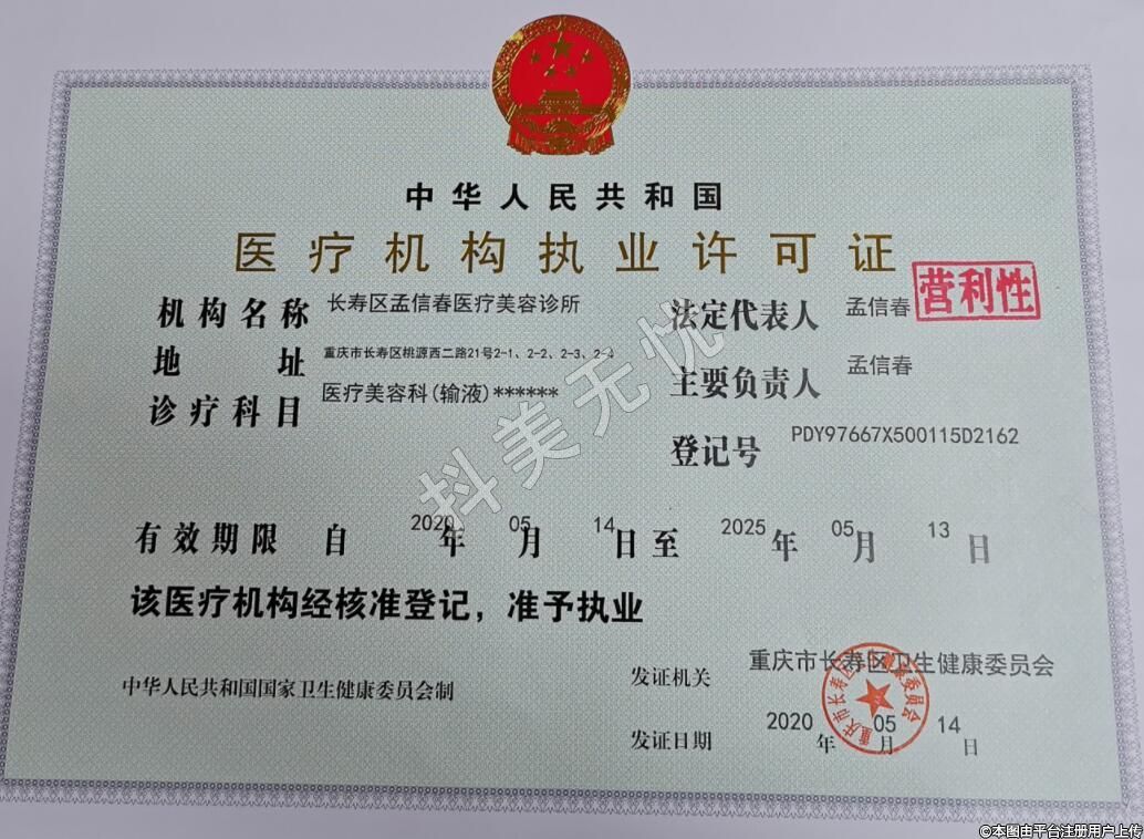 機構(gòu)名稱:長壽區(qū)孟信春醫(yī)療美容診所