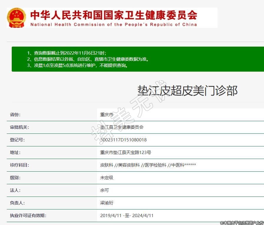 重慶皮超皮美成立于2018年,位于重慶市墊江縣桂陽街道天寶路111、121、123、129、131號,是集皮膚病、激光美容、皮膚美容為一體的皮膚綜合治療中心。引進多臺皮膚激光美容先進儀器設備,開展入:注射美容、白癜風、脫毛等項目。