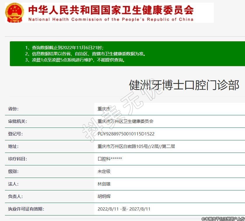 健洲牙博士口腔2022-05-12成立,地址:重慶市萬州區(qū)白巖路105號(hào)//2層//第二層,診療科目:口腔科******