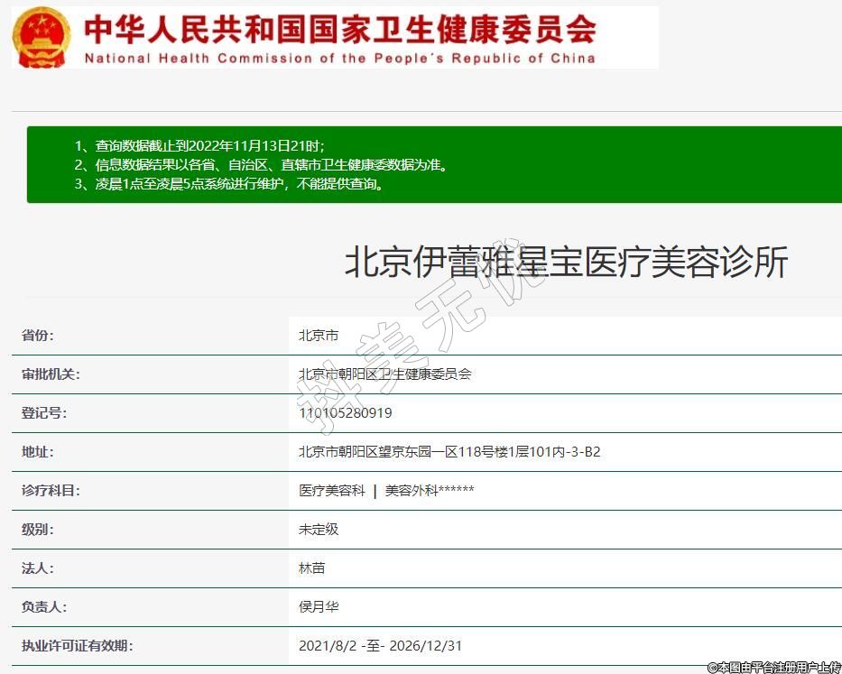 北京伊蕾雅星寶醫(yī)療美容2020-09-04成立,地址:北京市朝陽區(qū)望京東園一區(qū)118號樓1層101內(nèi)-3-B2,診療科目:醫(yī)療美容科 | 美容外科******