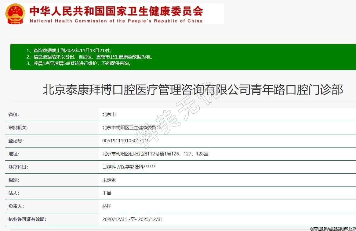 北京泰康拜博口腔醫(yī)療管理咨詢有限公司青年路口腔門診部
