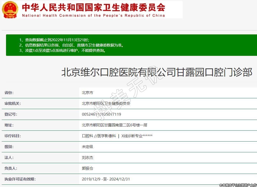 北京維爾口腔醫(yī)院有限公司甘露園口腔門診部