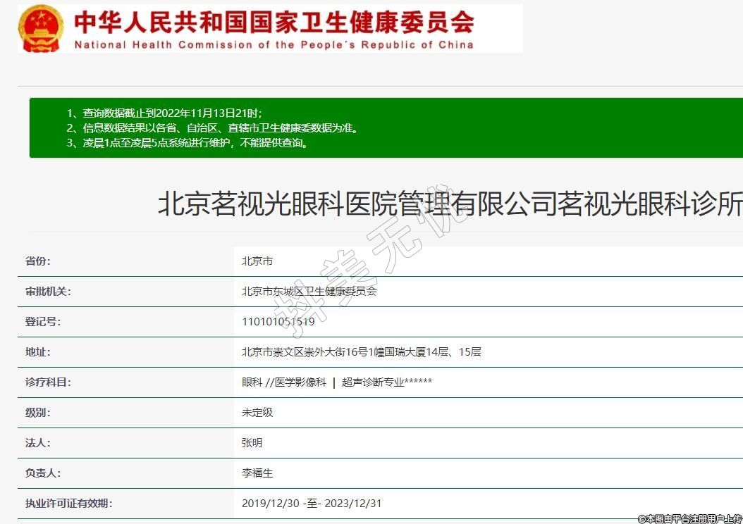 北京茗視光眼科醫(yī)院管理有限公司茗視光眼科診所