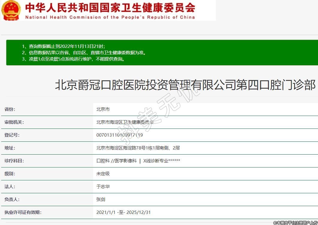 北京爵冠口腔醫(yī)院投資管理有限公司第四口腔門診部