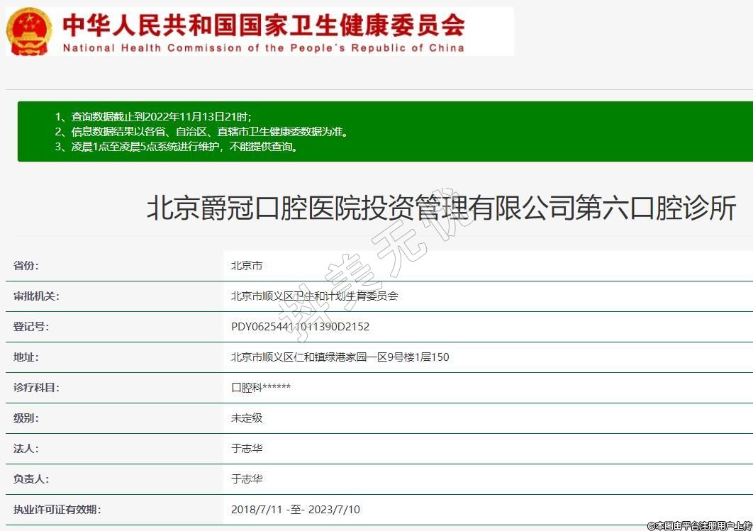 北京爵冠口腔醫(yī)院投資管理有限公司第六口腔診所