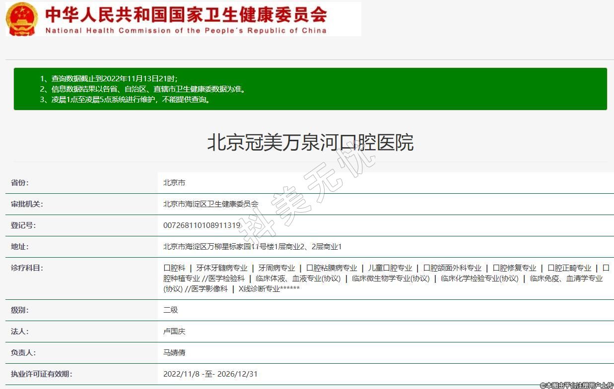 北京冠美萬(wàn)泉河口腔醫(yī)院