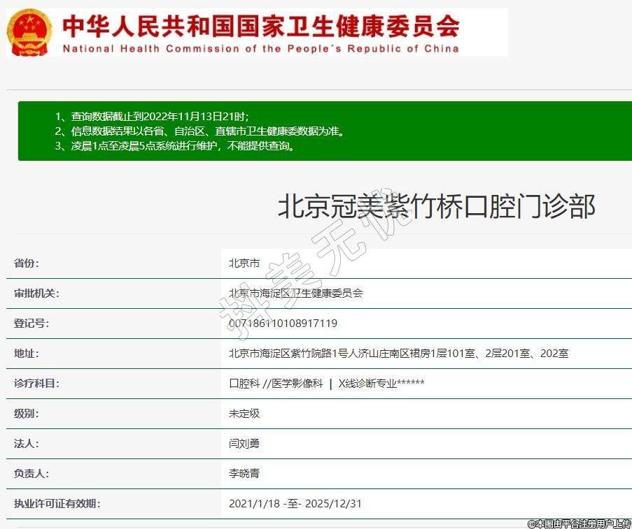 北京冠美紫竹橋口腔2020-09-28成立,地址:北京市海淀區(qū)紫竹院路1號人濟(jì)山莊南區(qū)裙房1層101室、2層201室、202室,診療科目:口腔科 //醫(yī)學(xué)影像科 | X線診斷專業(yè)******
