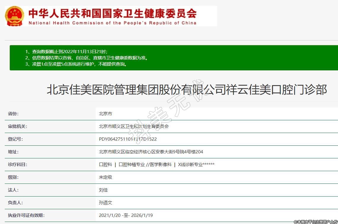 北京佳美醫(yī)院管理集團(tuán)股份有限公司祥云佳美口腔門診部