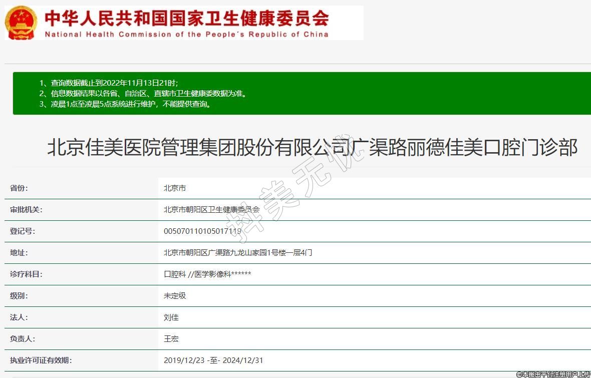 北京佳美醫(yī)院管理集團股份有限公司廣渠路麗德佳美口腔門診部