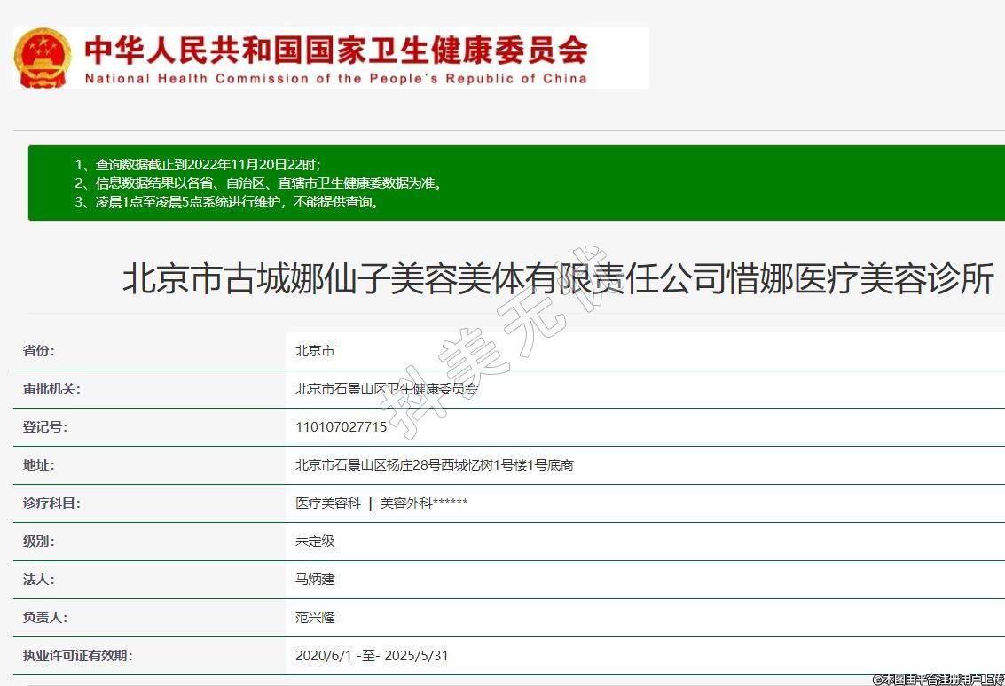 北京市古城娜仙子美容美體有限責(zé)任公司惜娜醫(yī)療美容診所
