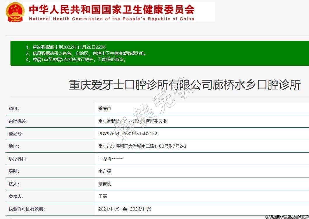 重慶愛牙士口腔2021-06-16成立,地址:重慶市沙坪壩區(qū)大學城南二路1100號附7號2-3,診療科目:口腔科******
