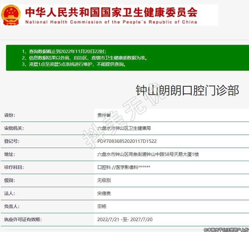 六盤水朗朗口腔2022-05-31成立,地址:六盤水市鐘山區(qū)荷泉街道鐘山中路58號天易大廈1樓,診療科目:口腔科 //醫(yī)學(xué)影像科******