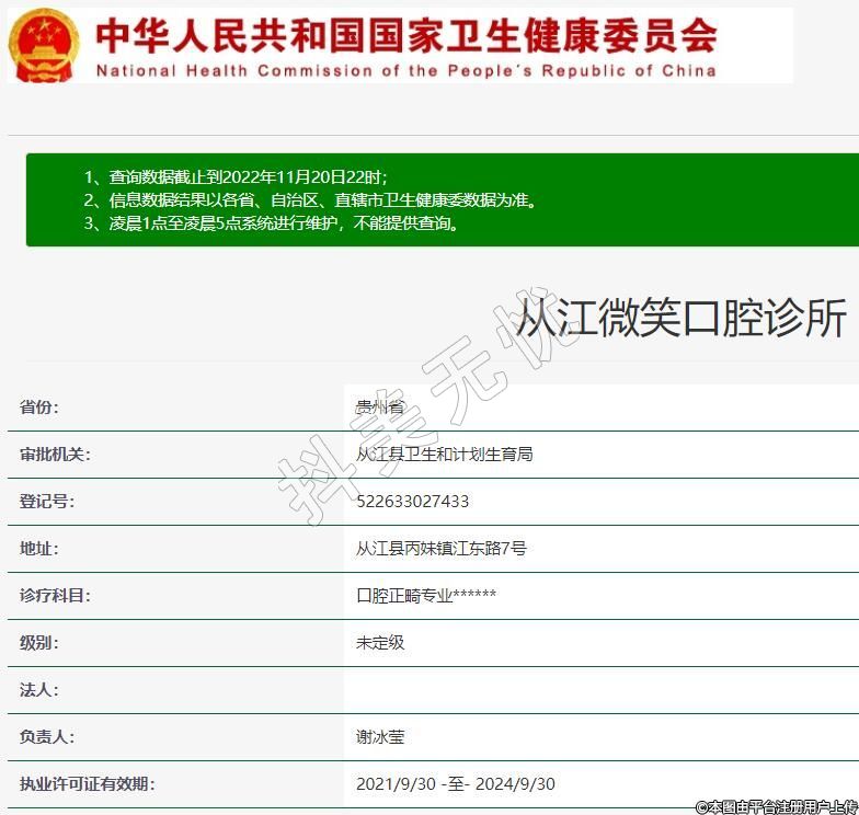 從江微笑口腔2022-09-05成立,地址:從江縣丙妹鎮(zhèn)江東路7號(hào),診療科目:口腔正畸專業(yè)******