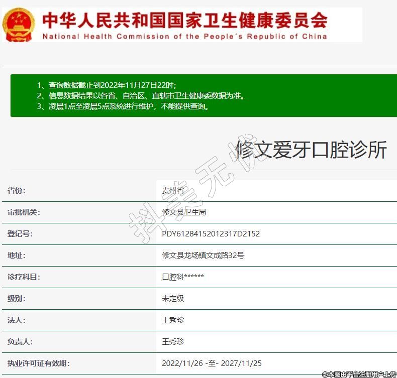執(zhí)業(yè)許可證有效期:2022/11/26 -至- 2027/11/25