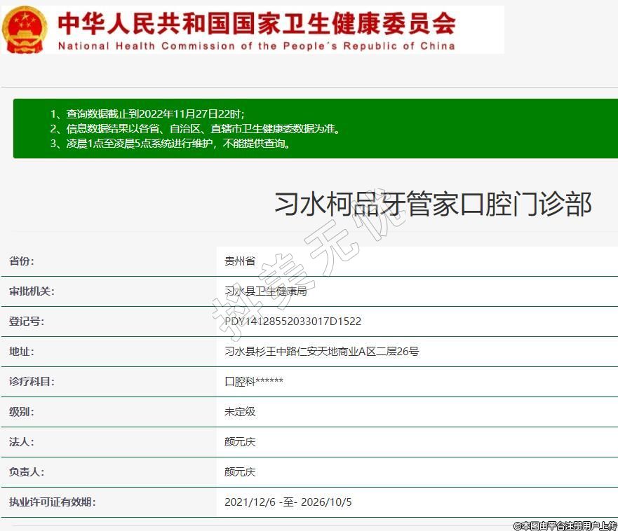 習(xí)水柯品牙管家口腔地址:習(xí)水縣杉王中路仁安天地商業(yè)A區(qū)二層26號,診療科目:口腔科******