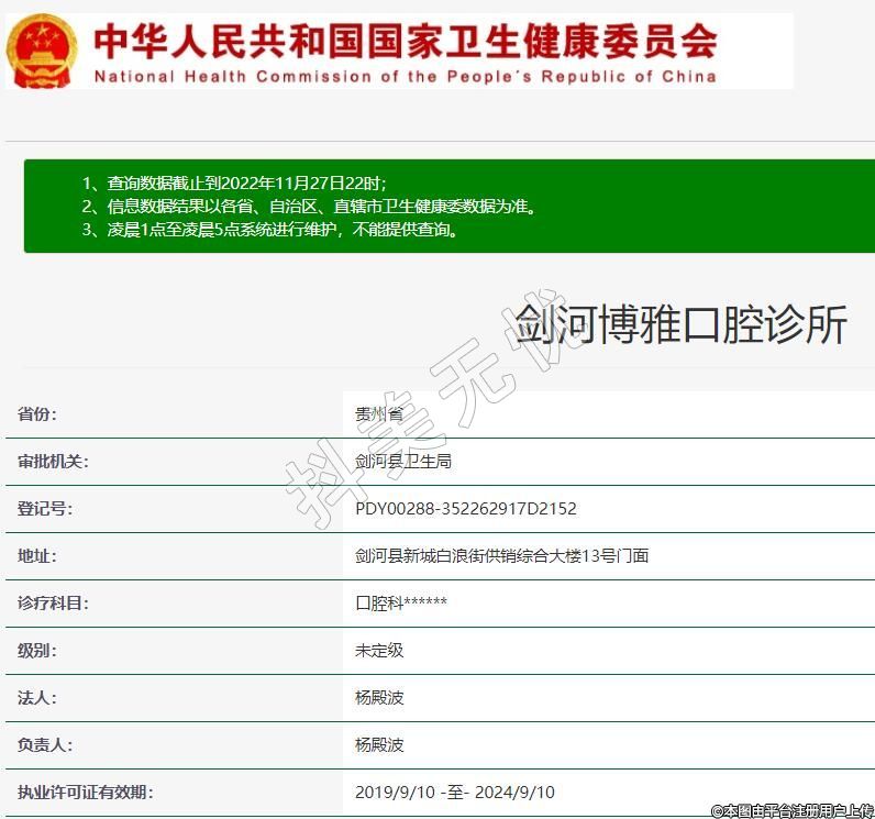 劍河博雅口腔2009-08-20成立,地址:劍河縣新城白浪街供銷綜合大樓13號門面,診療科目:口腔科******