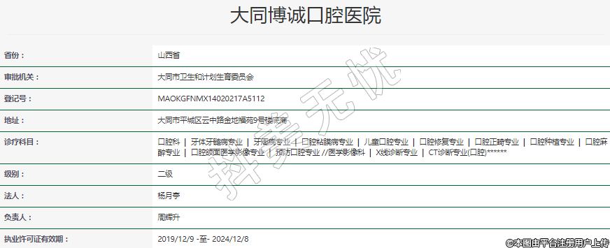 執(zhí)業(yè)許可證有效期:2019/12/9 -至- 2024/12/8