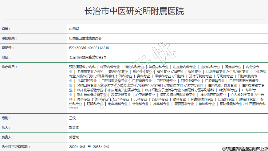 執(zhí)業(yè)許可證有效期:2022/10/8 -至- 2033/12/31