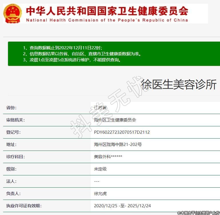 執(zhí)業(yè)許可證有效期:2020/12/25 -至- 2025/12/24
