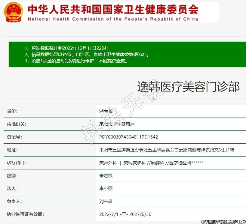 耒陽逸韓醫(yī)療美容門診部,統(tǒng)一社會信用代碼:91430481MA4PL4P44U,位于耒陽市五里牌街道辦事處五里牌居委會白云路南側(cè)與神農(nóng)路交叉口1幢,成立于2018年。宗旨是結(jié)合科學的醫(yī)學技術和??漆t(yī)生的治療方案,通過手術和非手術的方式,從醫(yī)學、美學、形體學多角度綜合規(guī)劃設計,幫忙年輕求美者實現(xiàn)皮膚和身體的年輕化。