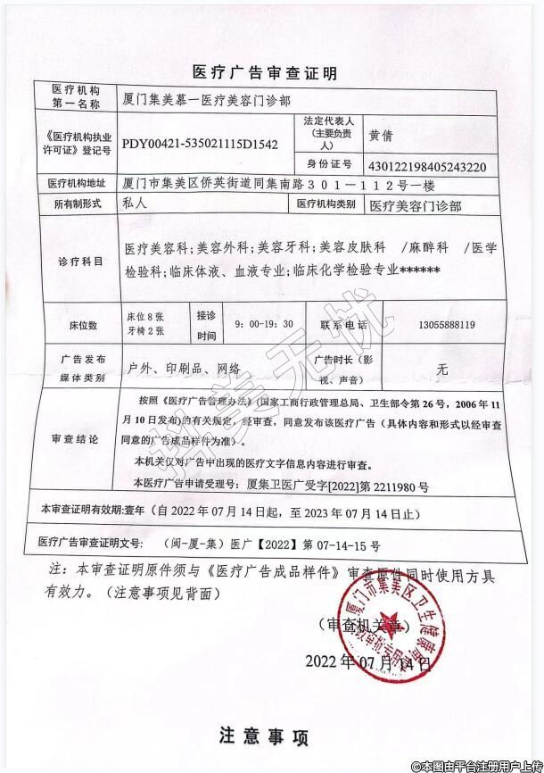 機(jī)構(gòu)名稱:廈門集美慕一醫(yī)療美容門診部