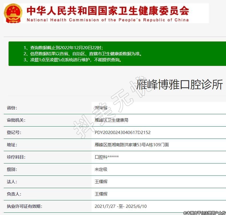 衡陽雁峰博雅口腔,診療科目:口腔科******