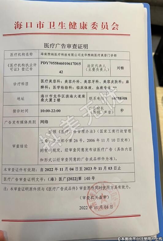 機(jī)構(gòu)名稱:海南煦納醫(yī)療科技有限公司龍華煦納醫(yī)療美容門診部