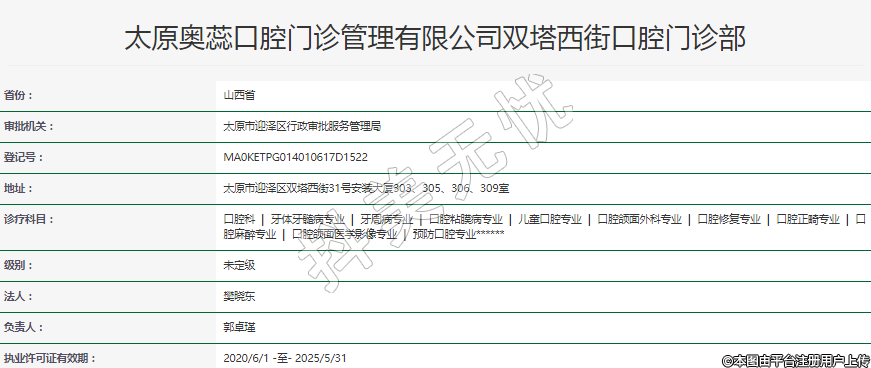 太原奧蕊口腔門診管理有限公司雙塔西街口腔門診部