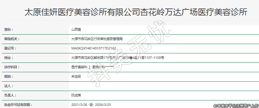 太原佳妍醫(yī)療美容診所有限公司杏花嶺萬達(dá)廣場醫(yī)療美容診所