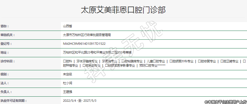 執(zhí)業(yè)許可證有效期:2022/5/4 -至- 2027/5/3