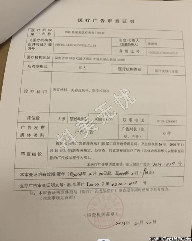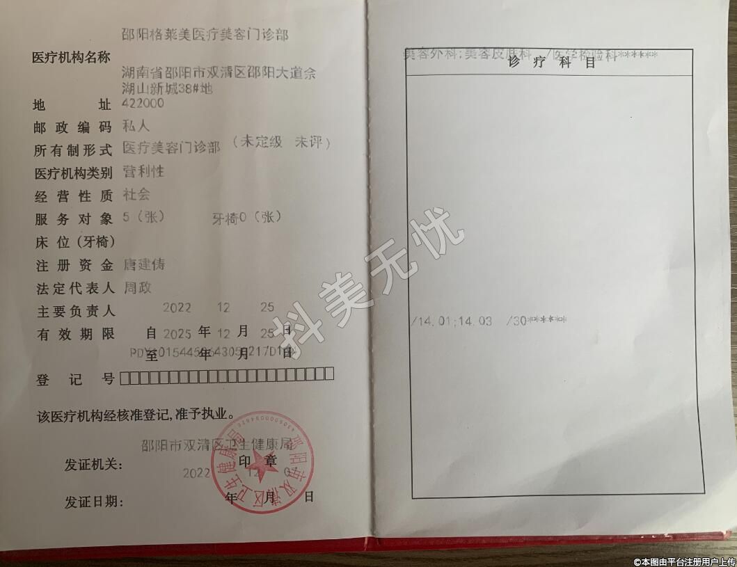 醫(yī)療機構(gòu)名稱:邵陽格萊美醫(yī)療美容門診部