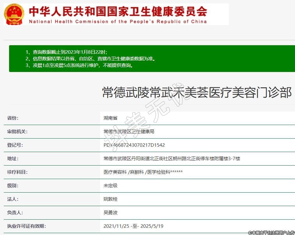 常德常武禾美薈醫(yī)療美容,診療科目:醫(yī)療美容科 /麻醉科 /醫(yī)學檢驗科******