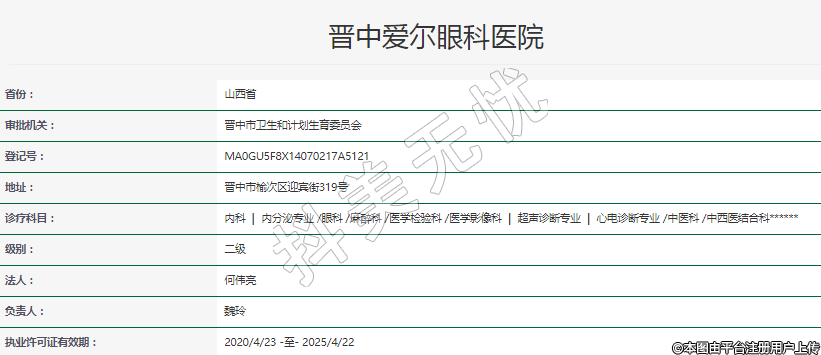 執(zhí)業(yè)許可證有效期:2020/4/23 -至- 2025/4/22