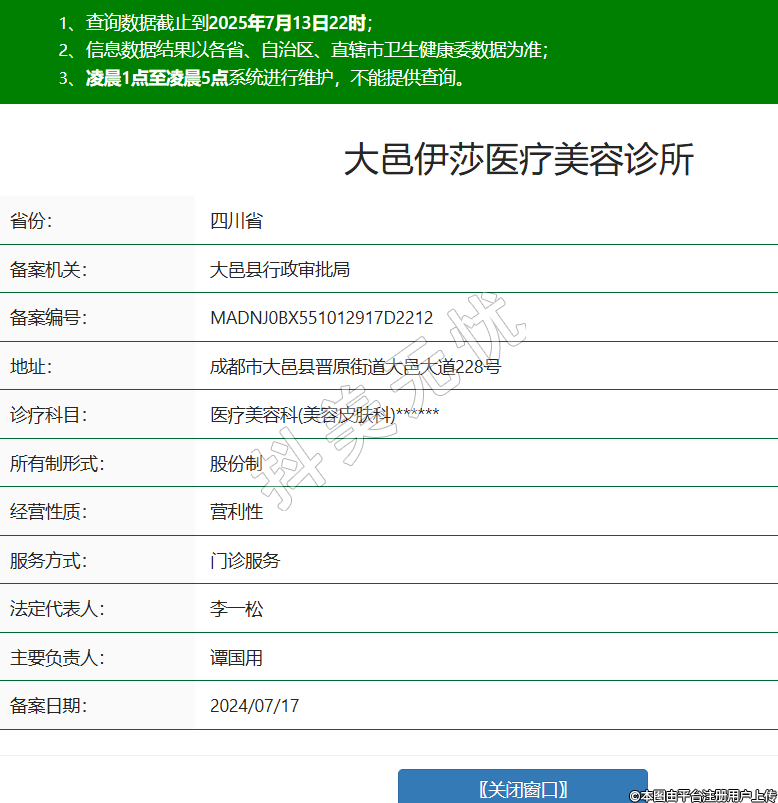 省份:四川省備案機(jī)關(guān):大邑縣行政審批局備案編號:MADNJ0BX551012917D2212地址:成都市大邑縣晉原街道大邑大道228號診療科目:醫(yī)療美容科(美容皮膚科)******所有制形式:股份制經(jīng)營性質(zhì):營利性服務(wù)方式:門診服務(wù)法定代表人:李一松主要負(fù)責(zé)人:譚國用備案日期:2024/07/17 -