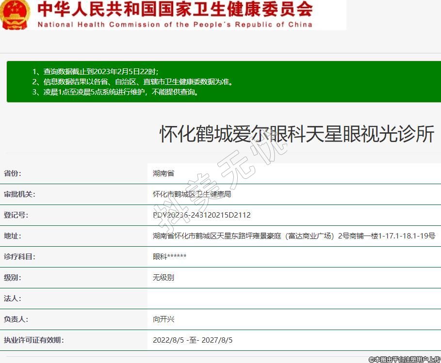 懷化鶴城愛爾眼科天星眼視光診所,診療科目:眼科******