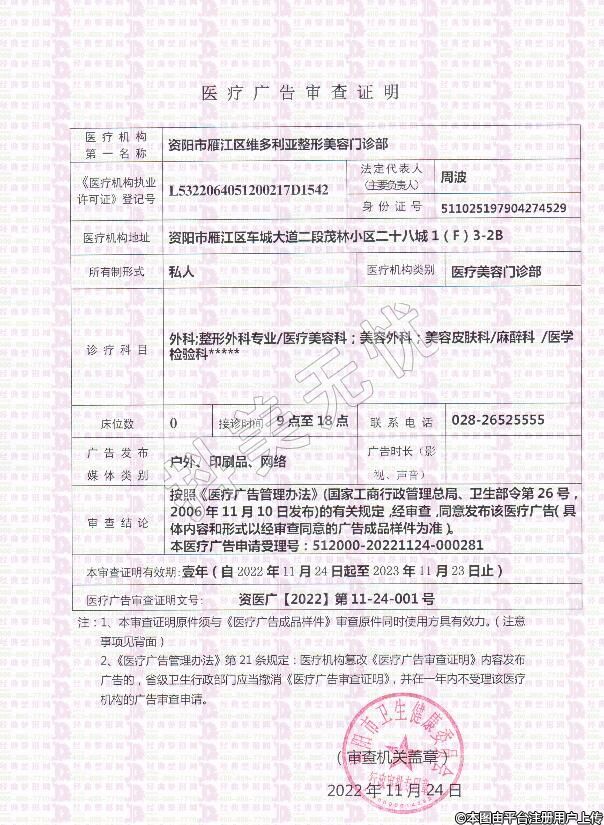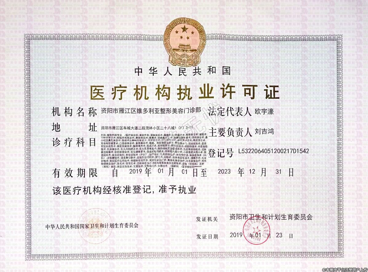 機構名稱:資陽市雁江區(qū)維多利亞整形美容門診部
