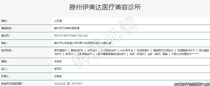 執(zhí)業(yè)許可證有效期:2022/6/8 -至- 2027/6/7