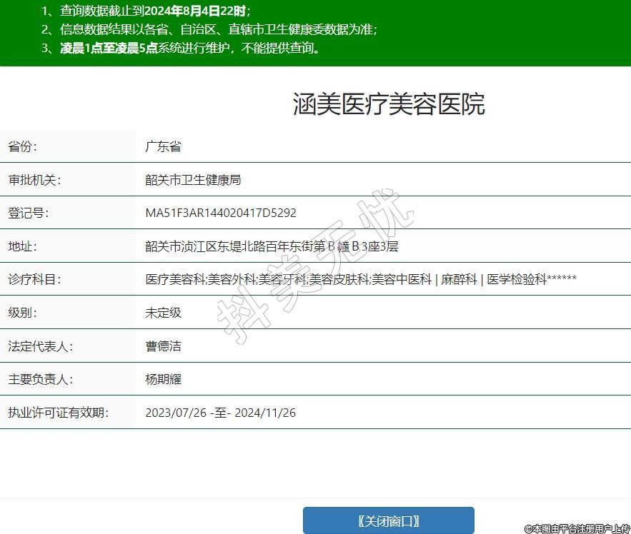韶關(guān)涵美醫(yī)療美容醫(yī)院于2018年成立,醫(yī)院位于韶關(guān)市湞江區(qū)東堤北路百年?yáng)|街B3棟三層,經(jīng)韶關(guān)市衛(wèi)健委批準(zhǔn)成立的正規(guī)醫(yī)療美容醫(yī)院,開(kāi)設(shè)有整形美容、醫(yī)學(xué)美膚、無(wú)創(chuàng)美容、口腔美容4大科室。