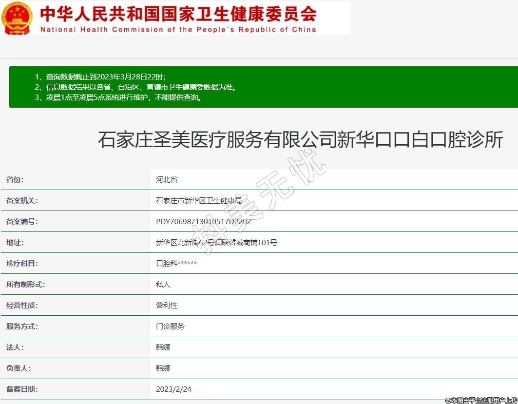 石家莊圣美醫(yī)療服務(wù)有限公司新華口口白口腔診所