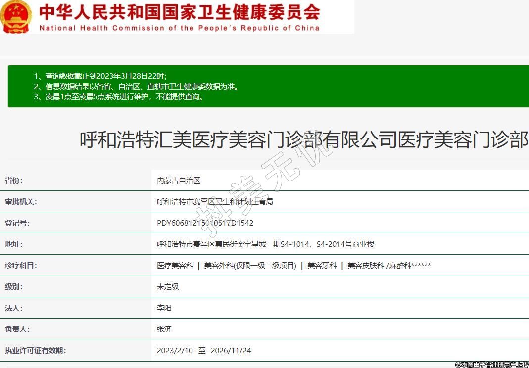 呼和浩特匯美醫(yī)療美容門(mén)診部有限公司醫(yī)療美容門(mén)診部