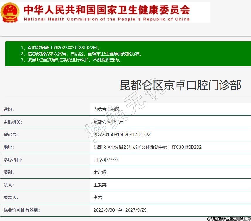 包頭京卓口腔(昆都侖)診療科目:口腔科******
