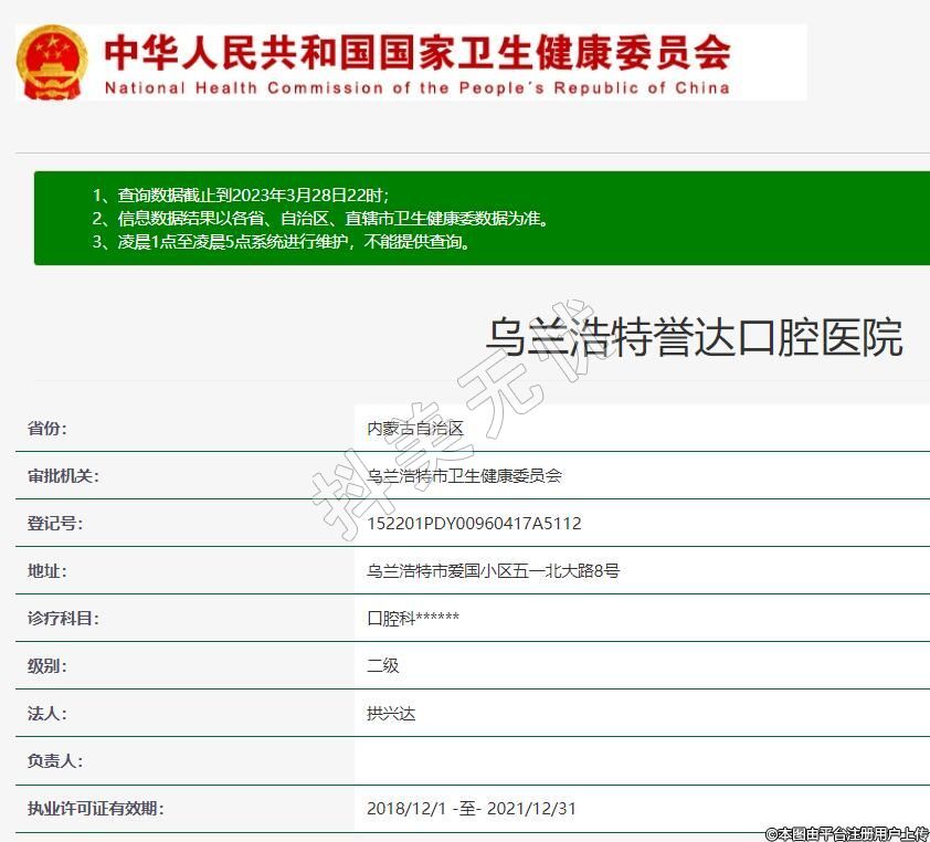 執(zhí)業(yè)許可證有效期:2018/12/1 -至- 2021/12/31