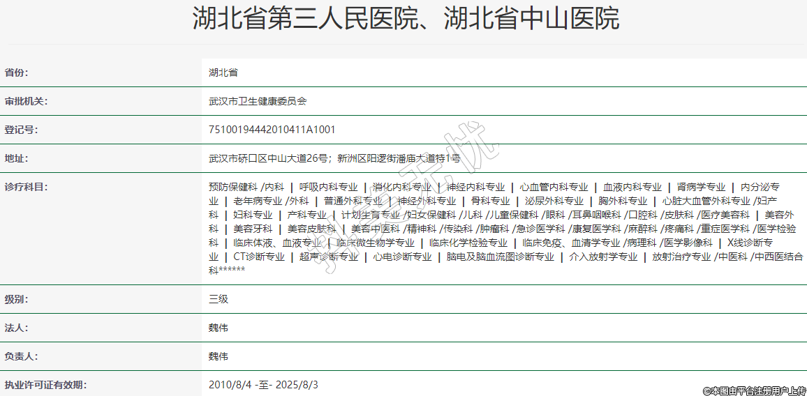 湖北省第三人民醫(yī)院、湖北省中山醫(yī)院