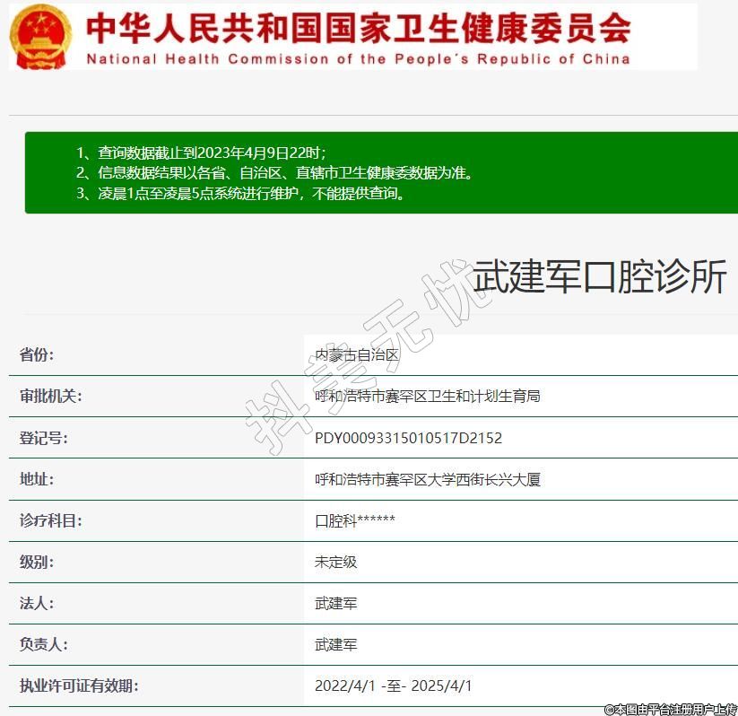 呼和浩特武建軍口腔,診療科目:口腔科******