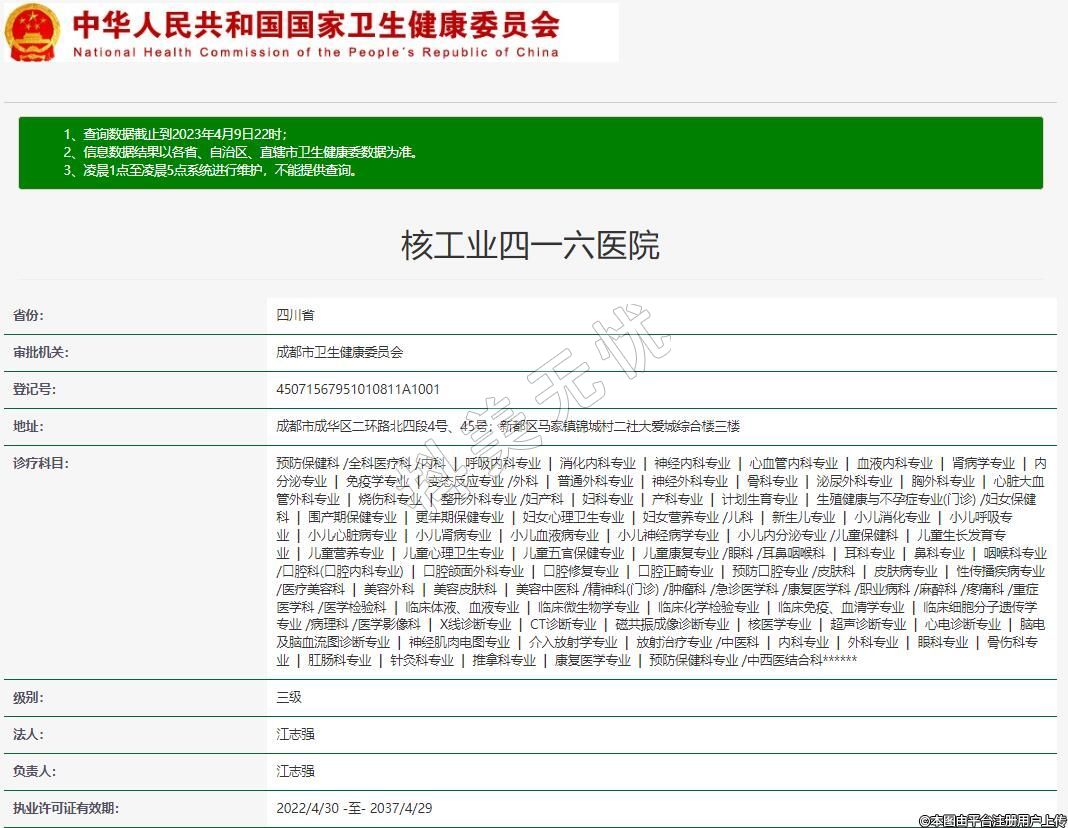 執(zhí)業(yè)許可證有效期:2022/4/30 -至- 2037/4/29
