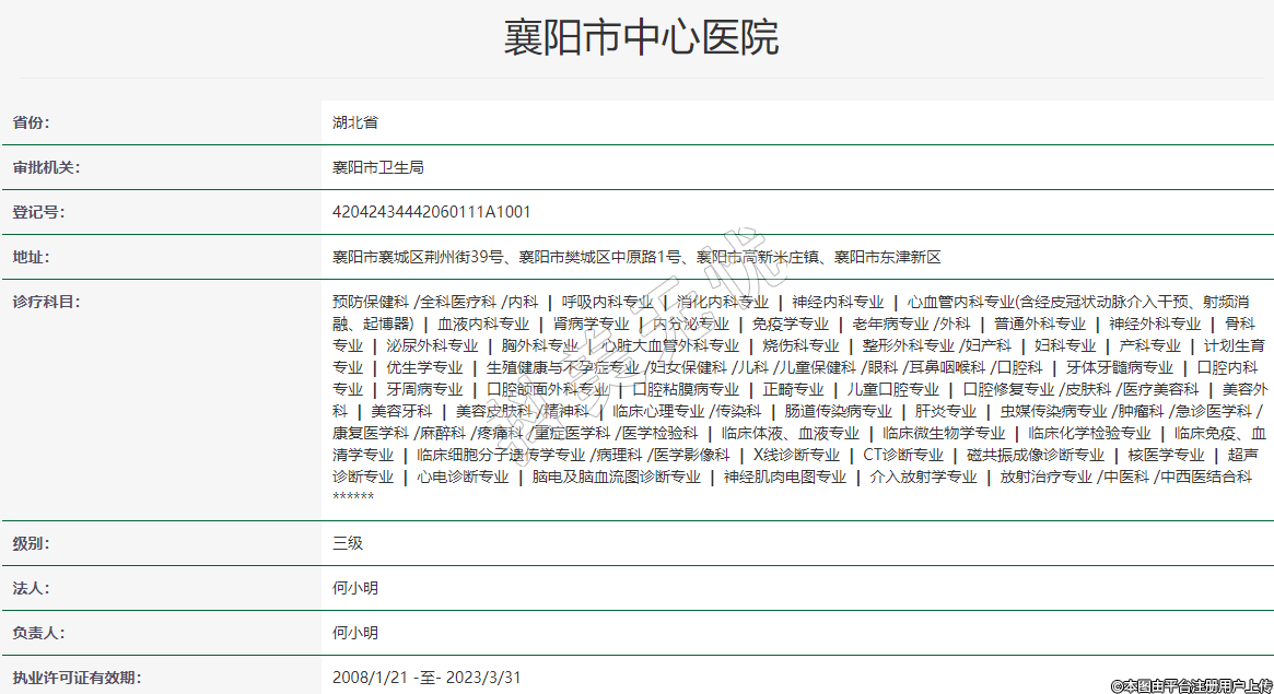 審批機(jī)關(guān):襄陽市衛(wèi)生局