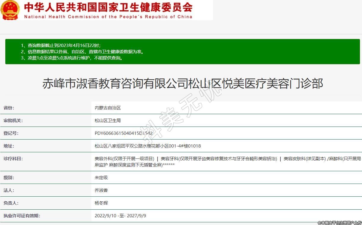 赤峰市淑香教育咨詢有限公司松山區(qū)悅美醫(yī)療美容門診部