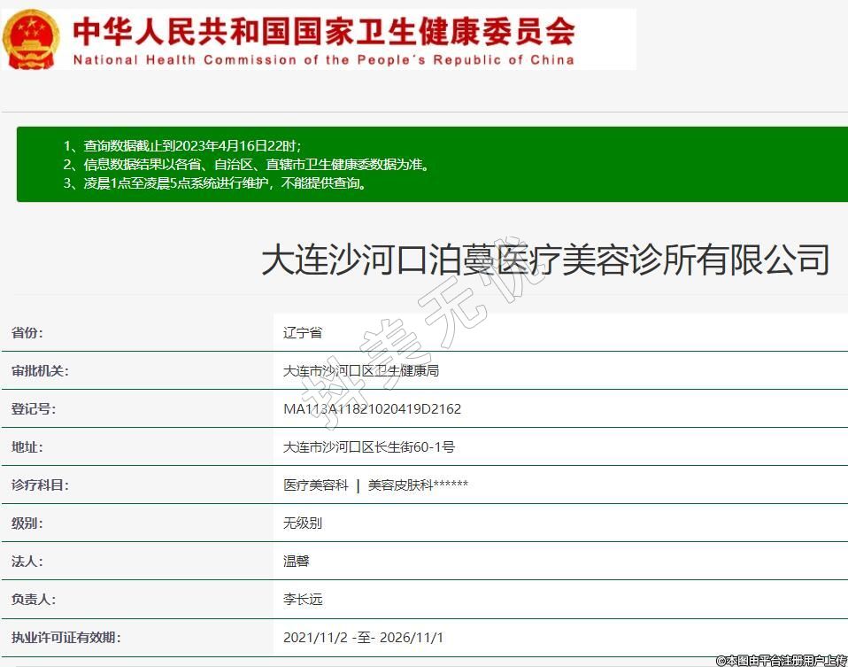 大連沙河口泊蔓醫(yī)療美容診所有限公司